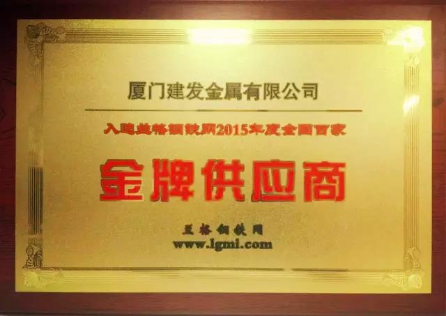 在蘭格鋼鐵網(wǎng)的主持下,經(jīng)過(guò)數輪謹慎、公正評選,"蘭格鋼鐵網(wǎng)金牌供應商TOP100"評選結果終于塵埃落定。建發(fā)金屬公司憑借專(zhuān)業(yè)服務(wù)、守信經(jīng)營(yíng),獲評蘭格金牌供應商TOP100,并受頒牌匾和證書(shū),這已是建發(fā)金屬公司連續第二次入選該榜單。此次入選的企業(yè)都是具有一定規模和實(shí)力,供應正品材,價(jià)格實(shí)惠,準斤足量、服務(wù)到位的企業(yè),具備較高的行業(yè)權威性和認可度。